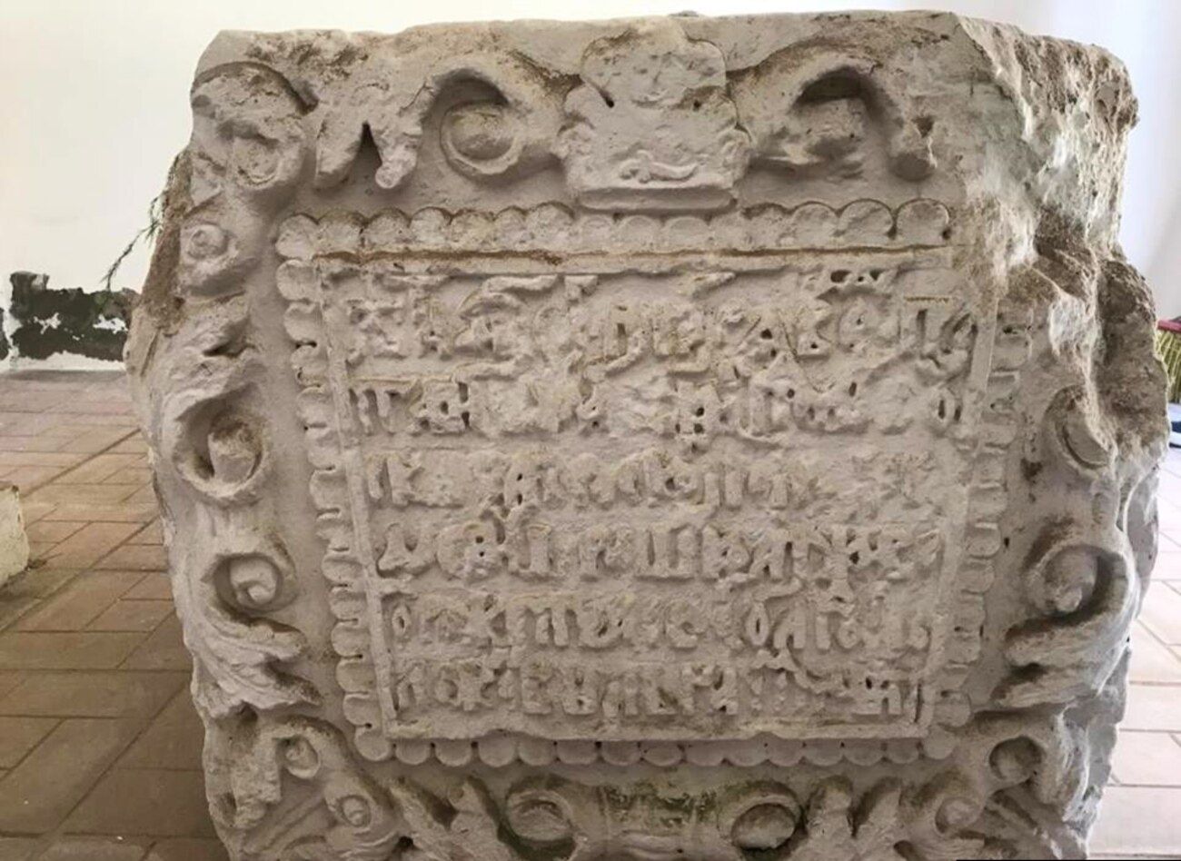 На надгробии Дорошенко надпись старыми буквами: "Лета 7206, ноября 9 день преставился раб Божий, гетман Войска Запорожского Петр Дорофеевич Дорошенко, а поживе от рождения своего 71 год и положен бысть на сем месте" / Фото взято с сайта "Радио Свобода"